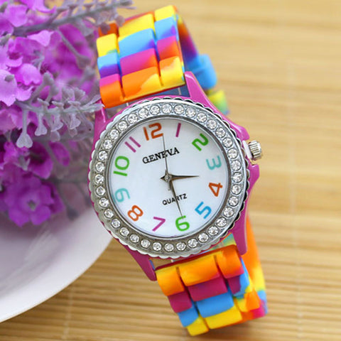Fashion Women's Flower Rhinestone Bracelet Bangle Analog Quartz Wrist Watch